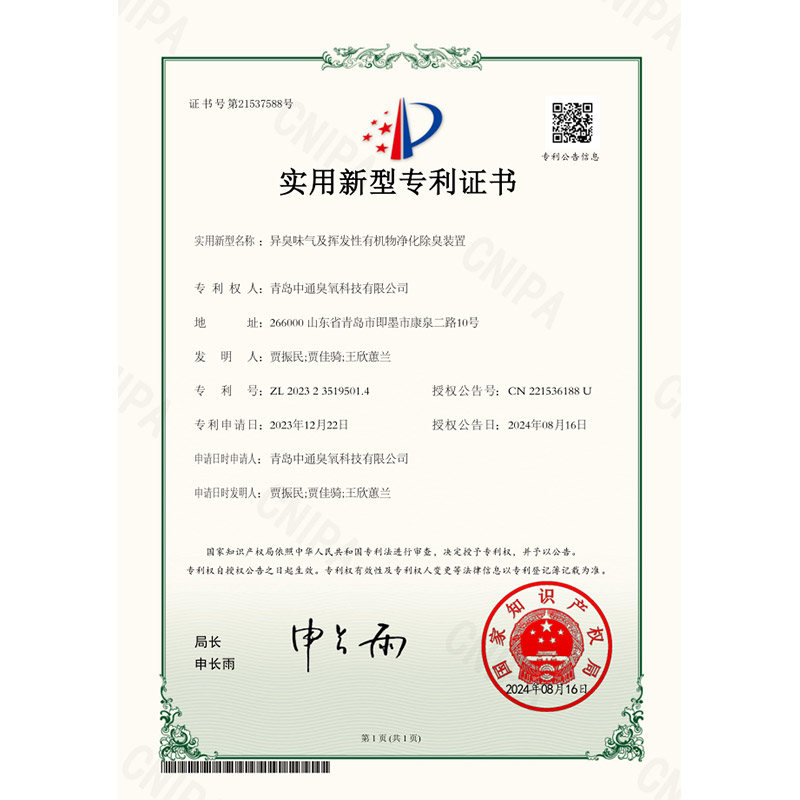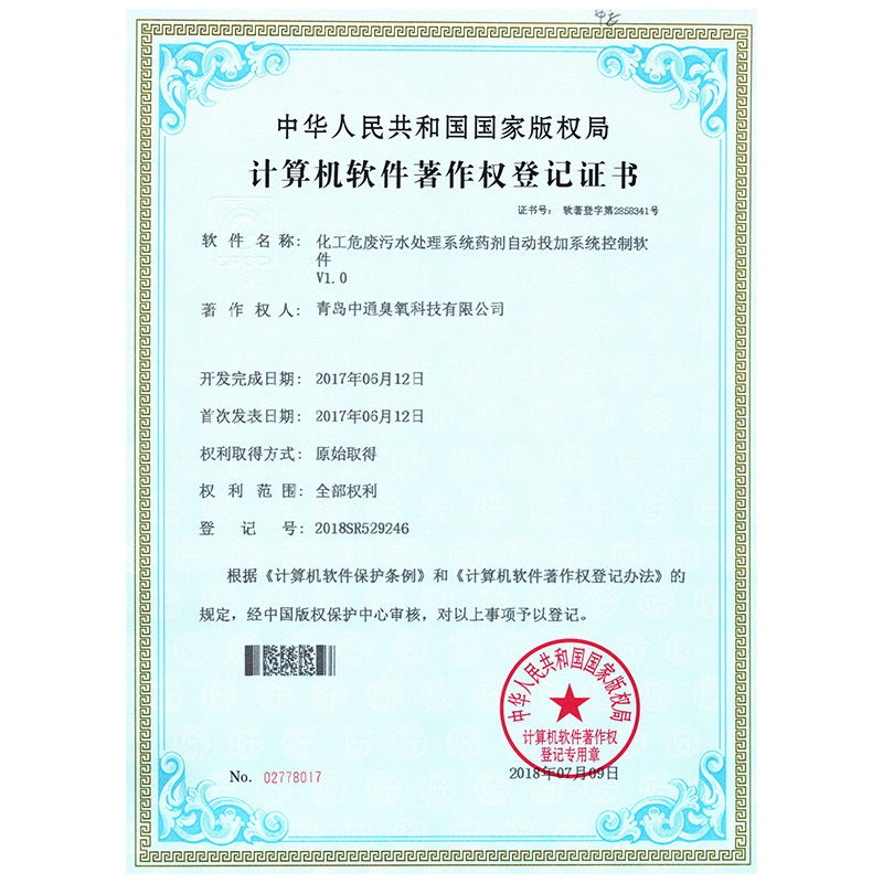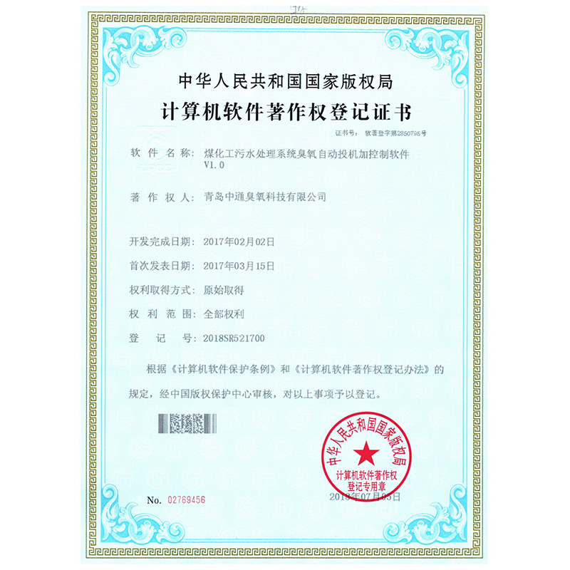 一種大型氧發(fā)生器冷卻水系統(tǒng)冷源回收循環(huán)利用裝置 一種催化氧化臭氧除臭系統(tǒng) 一種難降解工業(yè)廢水的處理工藝及裝置 異臭味氣及揮發(fā)性有機(jī)物凈化除臭裝置 污水廢水的COD降解裝置 一種大型臭氧發(fā)生器冷卻水系統(tǒng)冷源回收循環(huán)利用裝置 一種生活污水資源化利用快速處理裝置 一種具有水循環(huán)冷卻結(jié)構(gòu)的臭氧發(fā)生器 一種染料廢水處理臭氧發(fā)生器成套裝置 一種高級氧化垃圾滲濾處理用臭氧發(fā)生器 中通軟著 中通軟著 中通軟著 中通軟著 中通軟著 中通軟著 中通軟著 中通軟著 中通軟著 中通軟著 中通軟著 中通軟著 中通軟著